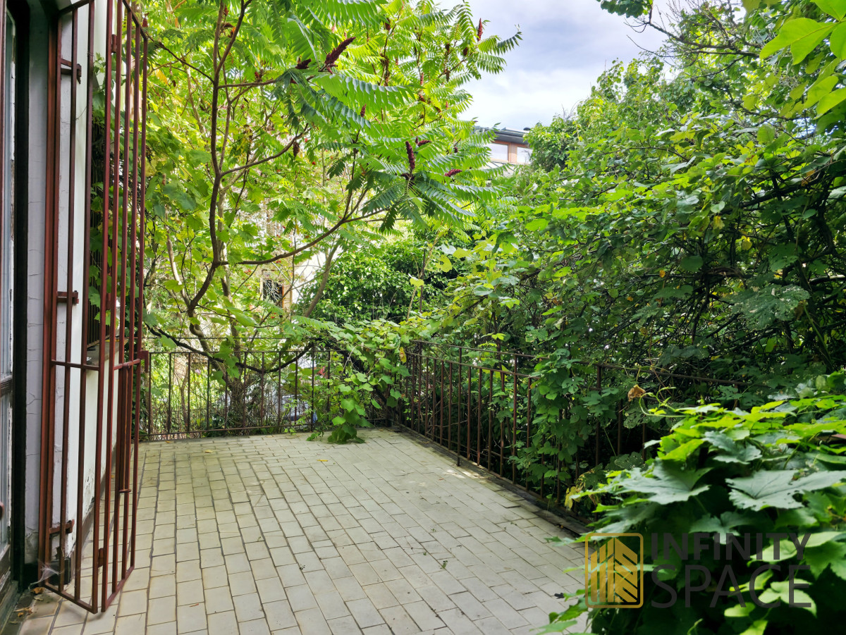 Na półpiętrze znajduje się dodatkowy duży pokój z łazienką i wyjściem na ogródek;