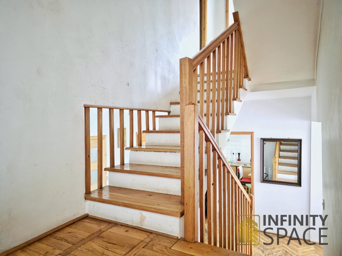 Budynek ma bardzo ciekawy układ - istnieje możliwość jego podziału i stworzenia dwóch niezależnych lokali mieszkalnych co może okazać się ciekawą okazją dla inwestorów.