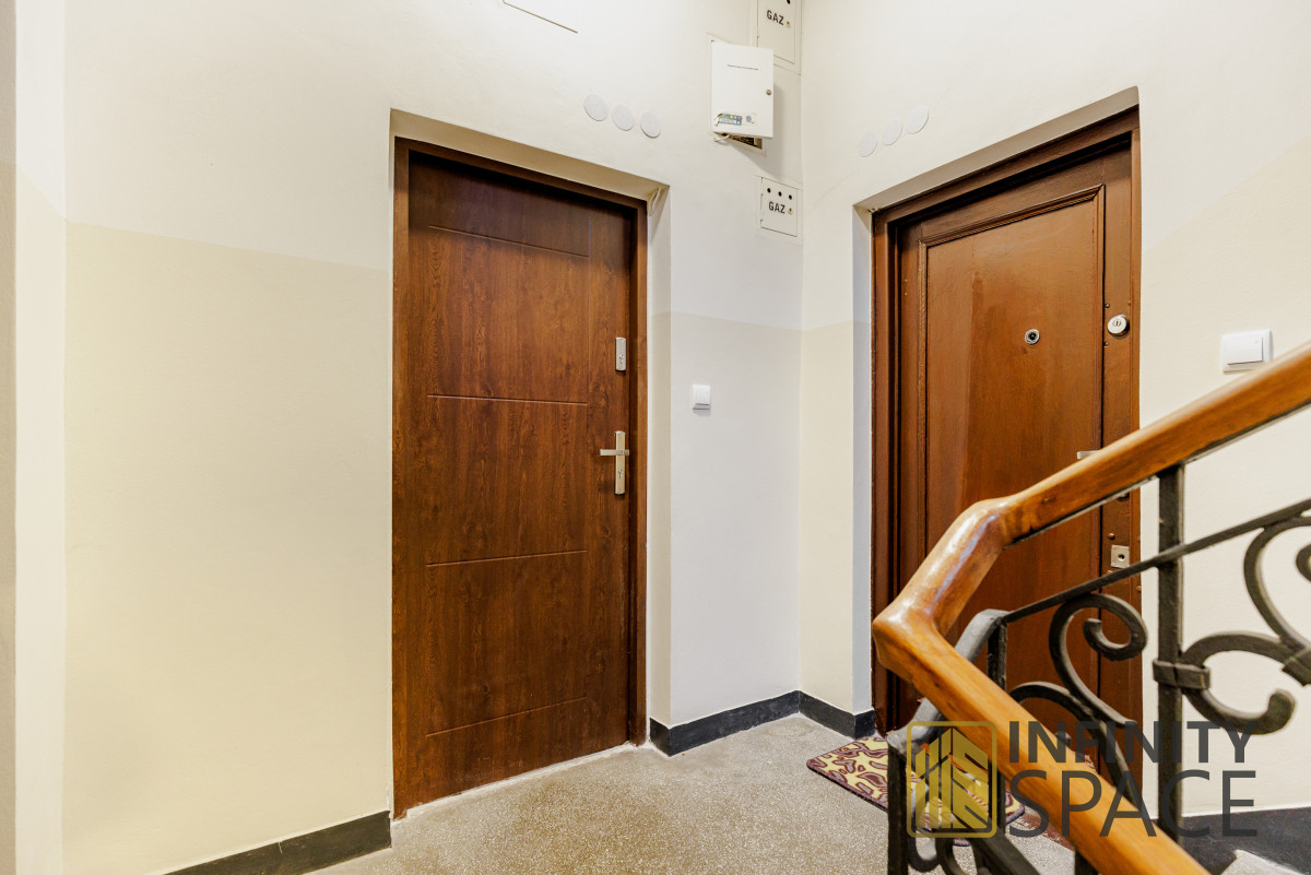 The apartment, nearly 53 sqm, is a two-bedroom with a separate kitchen and bathroom. It has a clear layout and good orientation according to the sides of the world. It can be easily adapted to modern standards or redesigned turning it into an apartment, lawyer's or psychologist's office. Its height, which is 3 meters, makes the apartment even more spacious. Heating from the municipal network, gas, hot water (gas stove).
