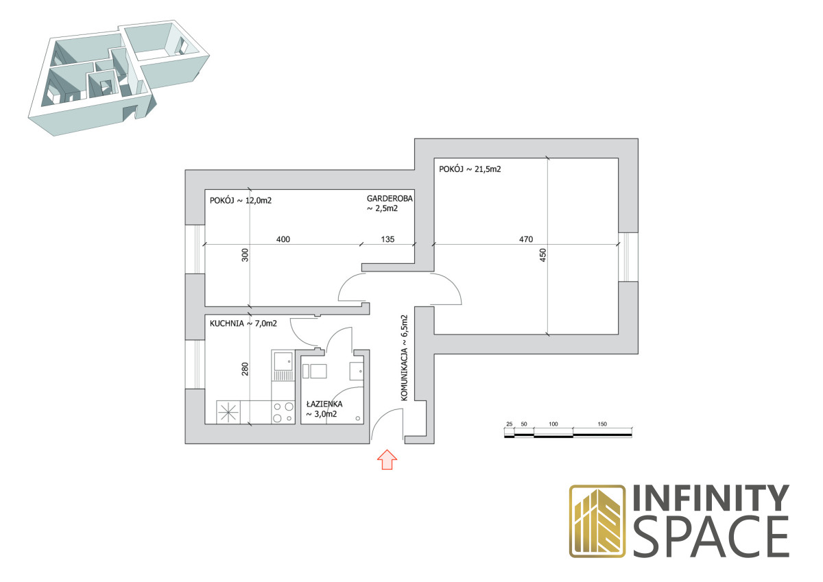 Mieszkanie, o powierzchni blisko 53 m2, jest dwupokojowe z osobną kuchnią i łazienką. Ma przejrzysty układ i dobrą orientację wg. stron świata. Można je w prosty sposób zaadaptować do współczesnych standardów lub przeprojektować zamieniając w apartament, biuro adwokata czy gabinet psychologiczny. Jego wysokość czyli 3 m sprawia, że mieszkanie jest jeszcze bardziej przestrzenne. Ogrzewanie z sieci miejskiej, gaz, ciepła woda (piec gazowy).
