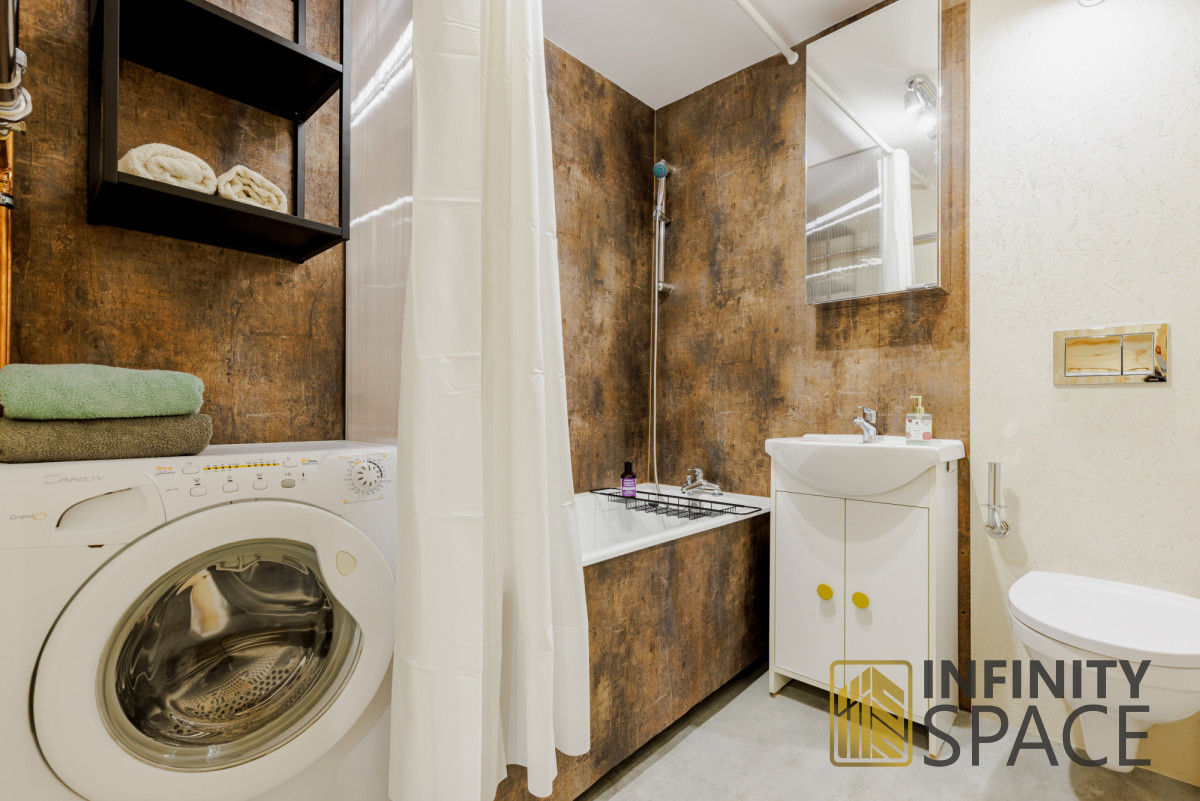 The kitchen is accessible from the hall, with a window to the living room. Equipped with all the most necessary appliances: oven, dishwasher, refrigerator with freezer, microwave, gas hob.