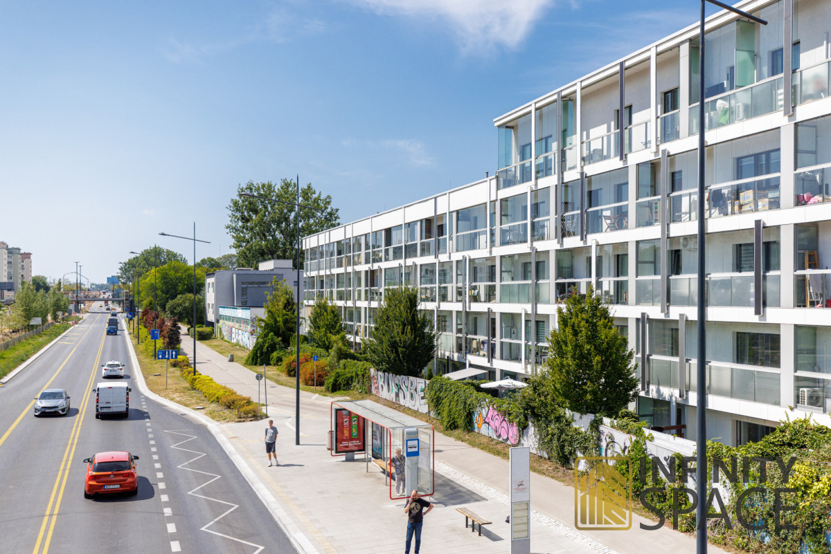 Odległość od ścisłego centrum wynosi zaledwie ok. 3 km, co gwarantuje szybki dojazd zarówno samochodem, jak i komunikacją miejską. W pobliżu znajdują się liczne sklepy, punkty usługowe, szkoły oraz przedszkola, a także nowoczesne ścieżki rowerowe prowadzące w kierunku centrum i nadwiślańskich bulwarów. Okolica jest doskonale skomunikowana - w zasięgu kilku minut pieszo znajdują się przystanki tramwajowe i autobusowe przy ul. Międzynarodowej i al. Waszyngtona.