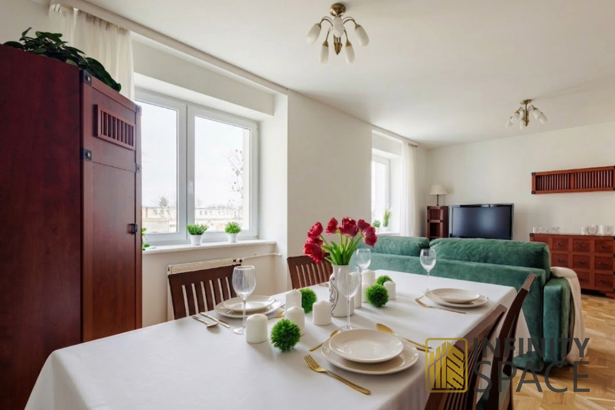 Mieszkanie ma powierzchnię 81 m², jest przestronne, jasne i bardzo funkcjonalne. Jest to pierwszy wynajem po remoncie generalnym, dzięki czemu mieszkanie jest świeże, zadbane i gotowe do zamieszkania. Duży metraż zapewnia poczucie przestrzeni, a przemyślany układ pomieszczeń gwarantuje komfort codziennego życia. Lokal idealnie sprawdzi się zarówno dla rodziny, pary, jak i osób pracujących zdalnie, które potrzebują dodatkowej przestrzeni na domowe biuro. Mieszkanie jest bardzo dobrze doświetlone naturalnym światłem, co sprawia, że wnętrze jest jasne, przytulne i sprzyja relaksowi po całym dniu.