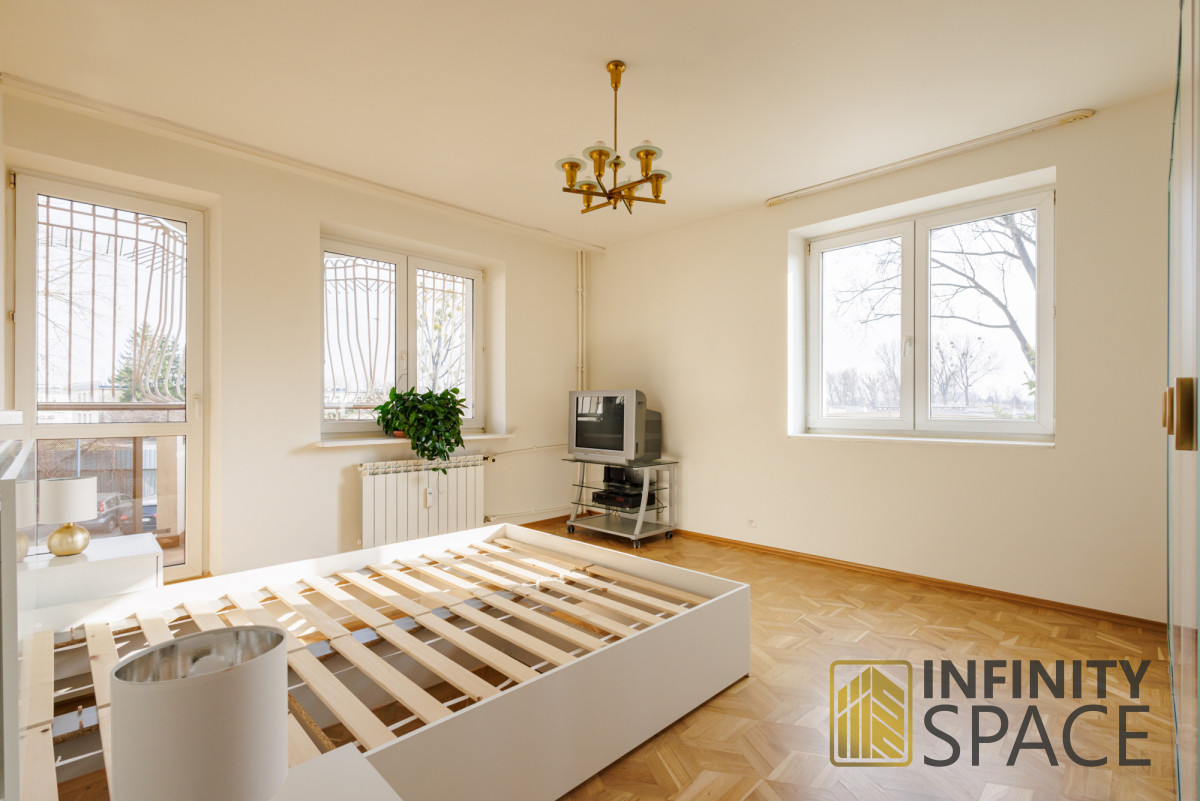 - oddzielna sypialnia ok. 18 m2 z łóżkiem małżeńskim oraz pojemne szafy i TV,