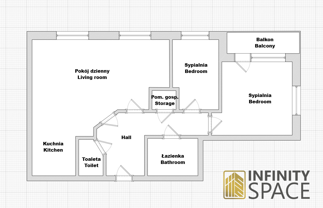 Mieszkanie składa się z następujących pomieszczeń: