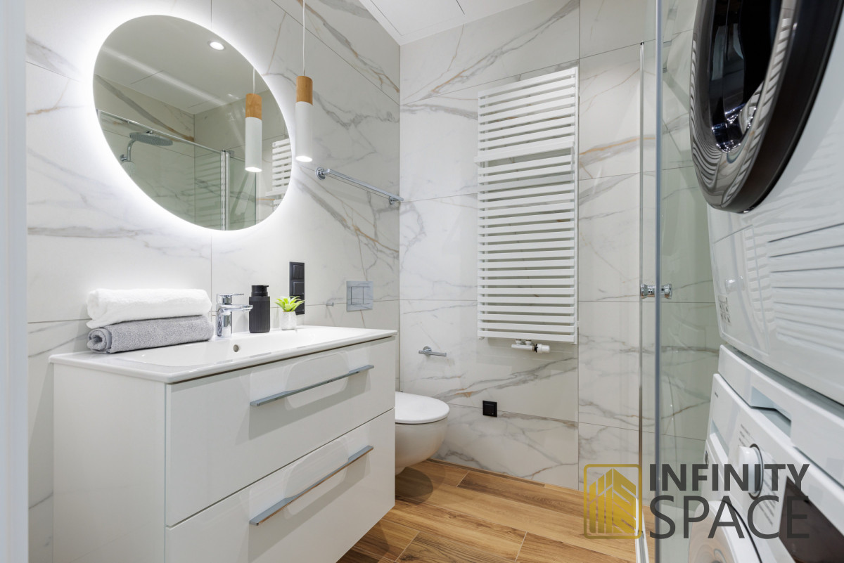 The apartment is located in the vibrant Wola district, in the heart of Warsaw, right next to the Rondo Daszyńskiego metro station, with numerous trams, buses, restaurants, shops, and recreational areas within easy reach. This is an option for even the most discerning clients who value comfort, lifestyle, and excellent transport links. Right next to the building, in addition to numerous shops, restaurants, and cafes, is the Złote Tarasy shopping center. In recent years, the constantly expanding nearby Norblin Factory and Warsaw Brewery have begun to delight with a multitude of cultural events - festivals, concerts, exhibition openings, and shows. There's probably no other place like it in Warsaw that combines centuries-old monuments and tradition with modern, trendy dining options. It attracts not only locals but also international visitors, who have created a unique space for cultural integration.