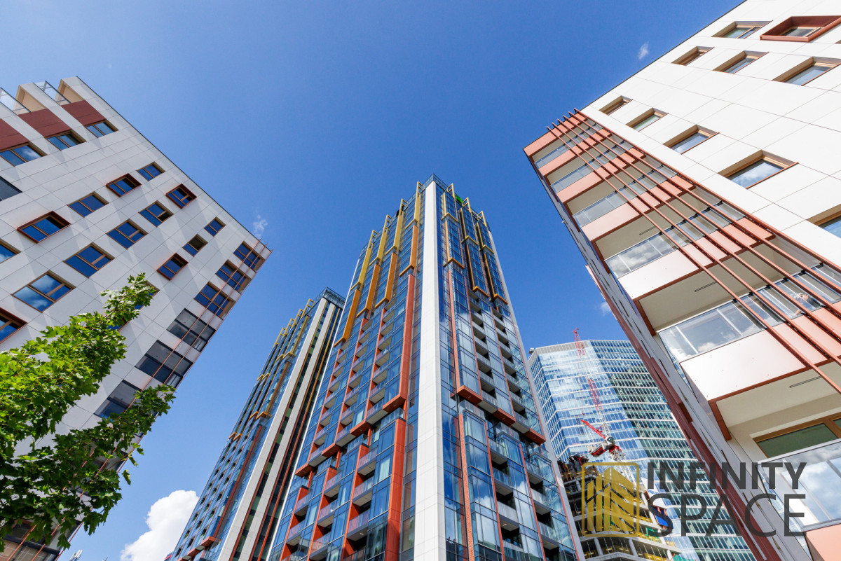 Towarowa Towers is an impressive, modern residential complex in the heart of Wola's business district, at Prosta Street 69C. It consists of two 29-story towers (105 meters high), offering 577 comfortable apartments. The development features minimalist architecture with colorful accents, a representative lobby, relaxation area, fitness club, terraces, and a green courtyard. Residents also have access to a reception and meeting spaces. Security is ensured by 24-hour security and CCTV.