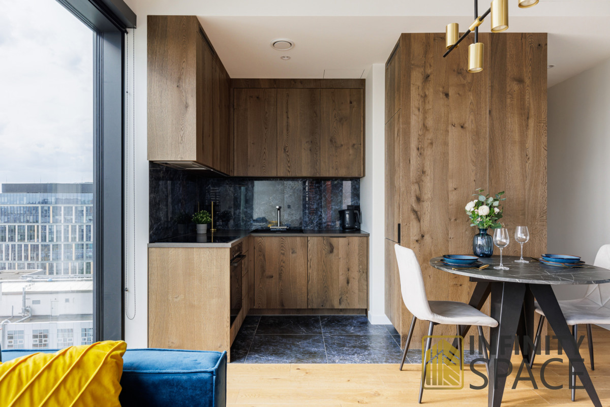 The apartment is located in the vibrant Wola district, in the heart of Warsaw, right next to the Rondo Daszyńskiego metro station, with numerous trams, buses, restaurants, shops, and recreational areas within easy reach. This is an option for even the most discerning clients who value comfort, lifestyle, and excellent transport links. Right next to the building, in addition to numerous shops, restaurants, and cafes, is the Złote Tarasy shopping center. In recent years, the constantly expanding nearby Norblin Factory and Warsaw Brewery have begun to delight with a multitude of cultural events - festivals, concerts, exhibition openings, and shows. There's probably no other place like it in Warsaw that combines centuries-old monuments and tradition with modern, trendy dining options. It attracts not only locals but also international visitors, who have created a unique space for cultural integration.