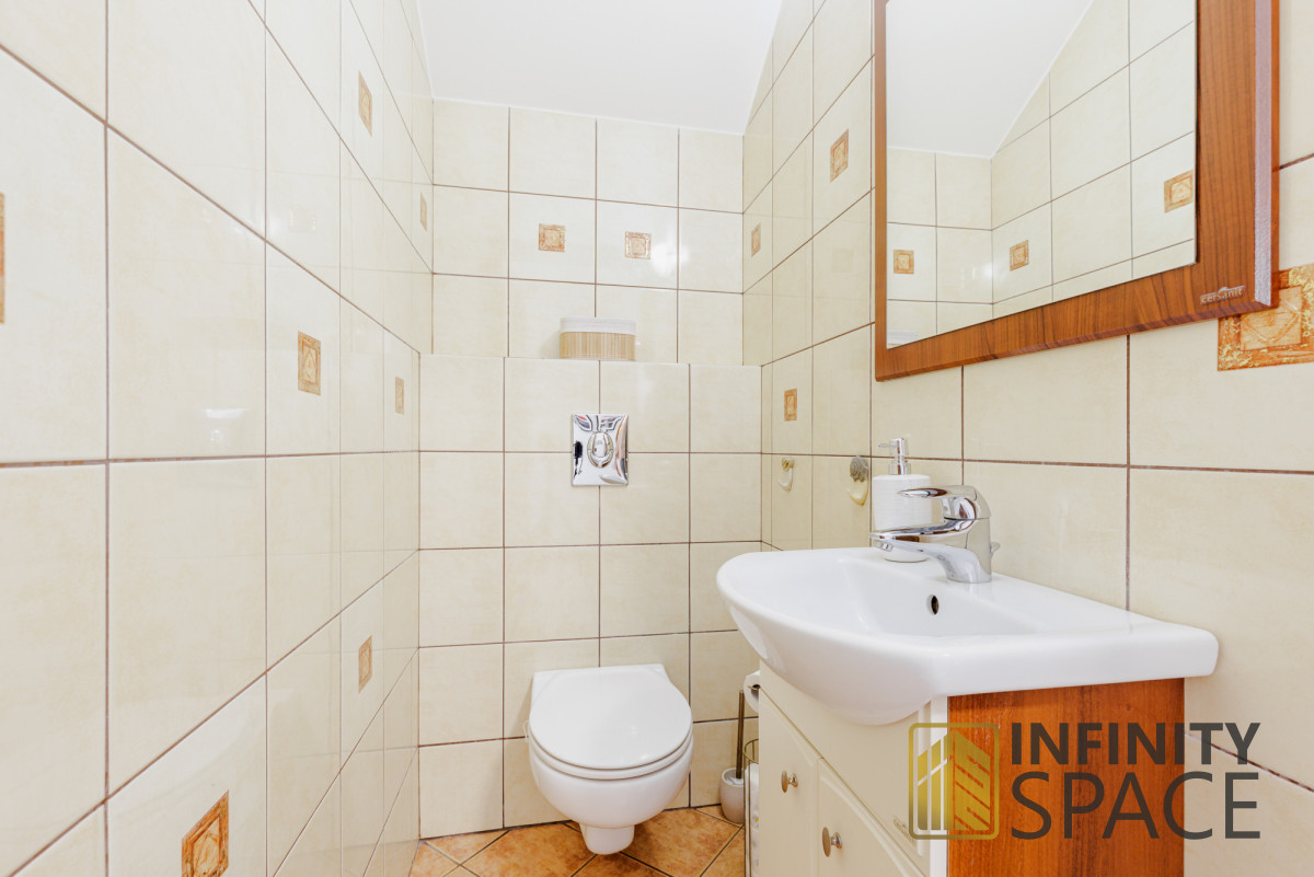 - dużą łazienkę, o powierzchni blisko 9 m2.
