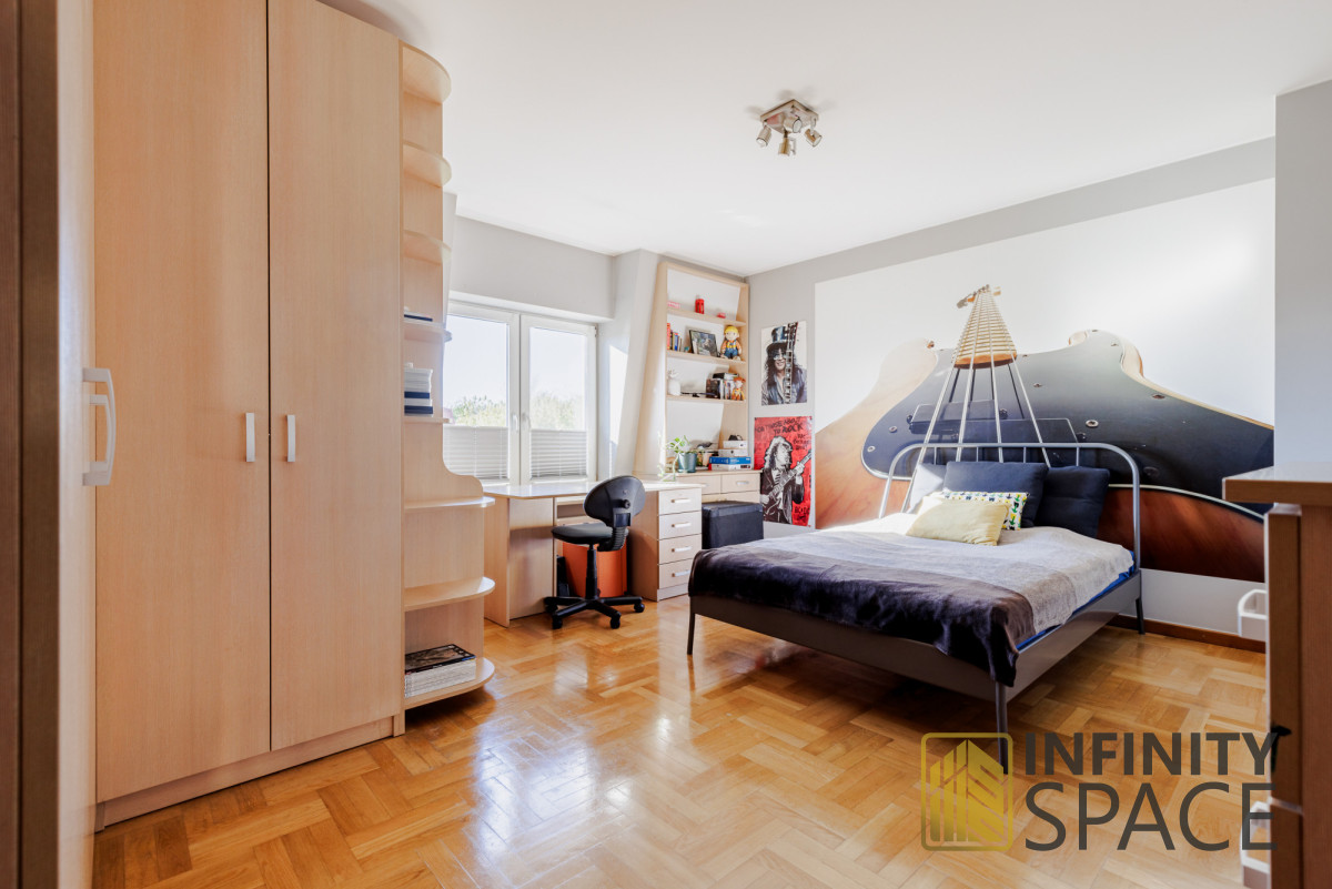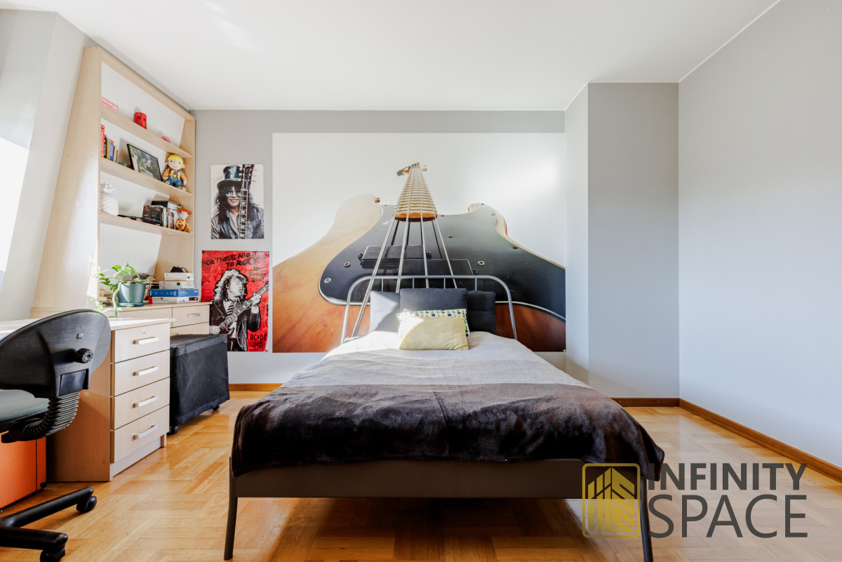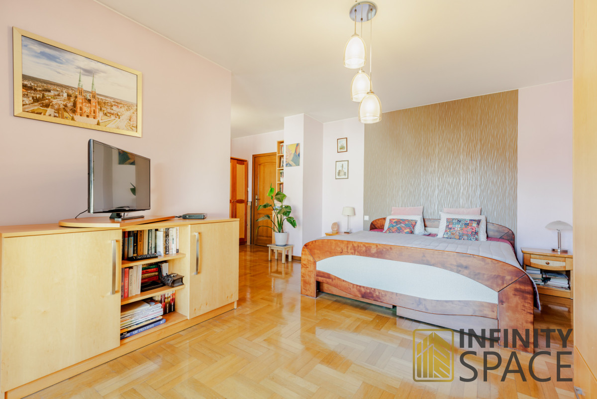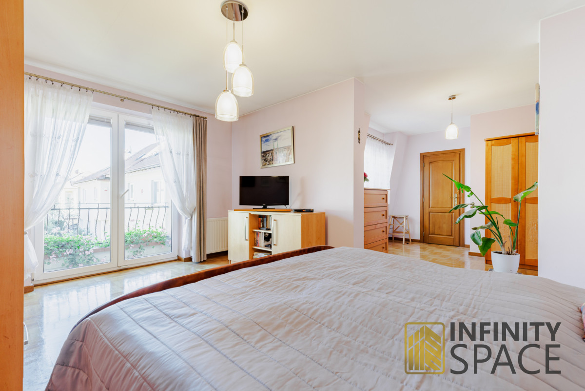 - sypialnię typu "master" z garderobą o powierzchni blisko 27 m2 z wyjściem na balkon (sypialnia może zostać podzielona na dwa mniejsze pokoje),