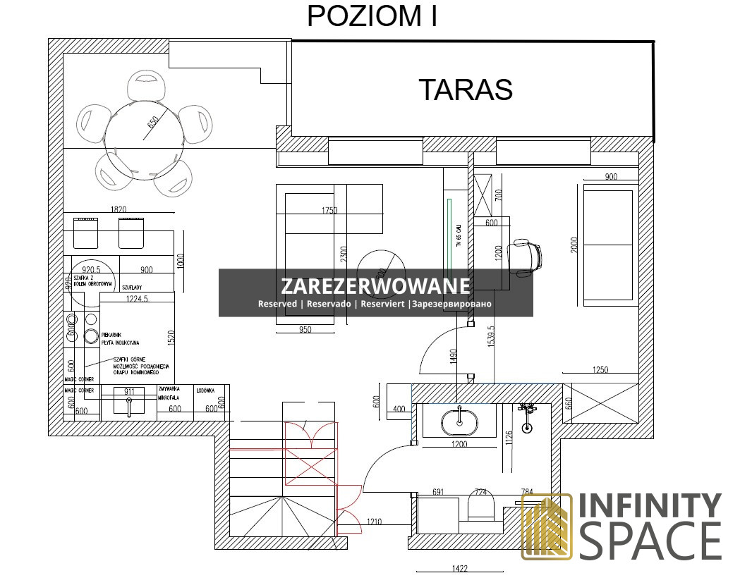 - aneks kuchenny z wyspą, wyposażony we wszystkie potrzebne sprzęty (zmywarka, piekarnik parowy)
