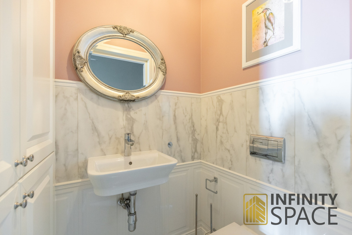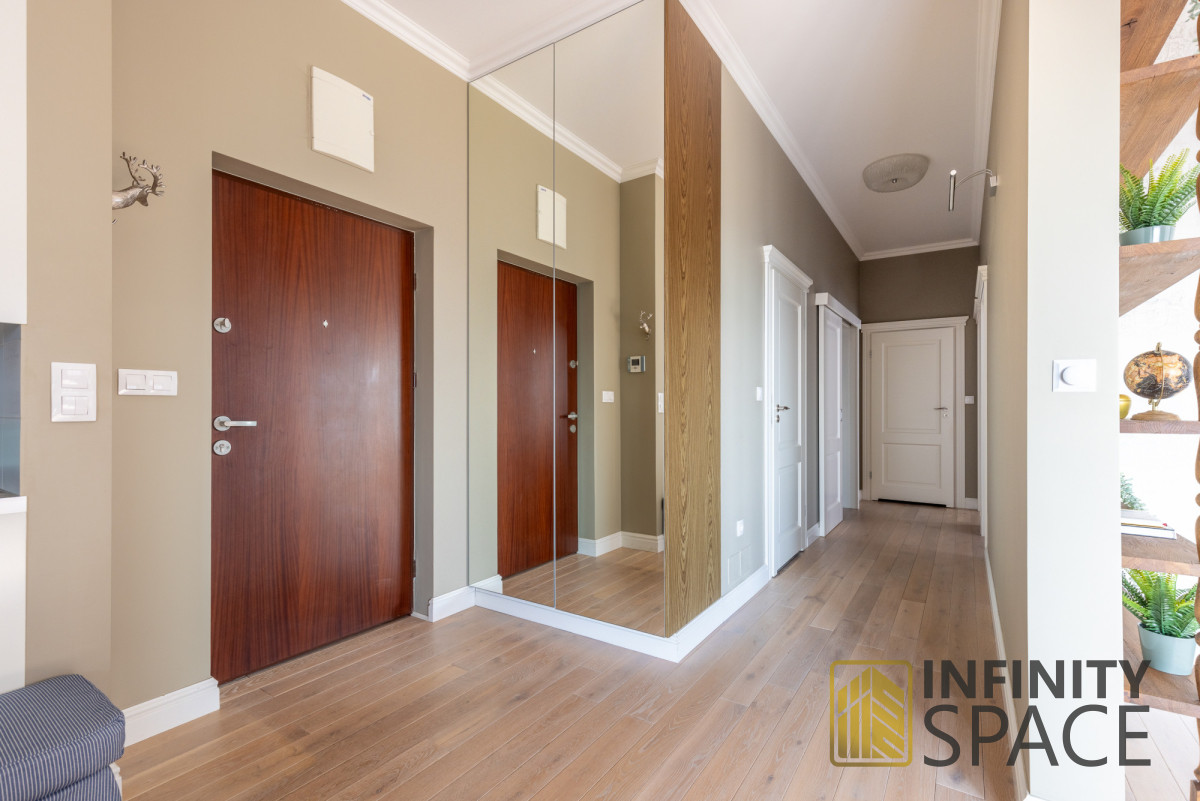 High ceilings, huge windows, and a sunny south-west exposure fill the apartment with light throughout the day. The panorama of Warsaw stretches out before you - a view that delights at any time of day. Peace, quiet, and luxury - right in the heart of the city.