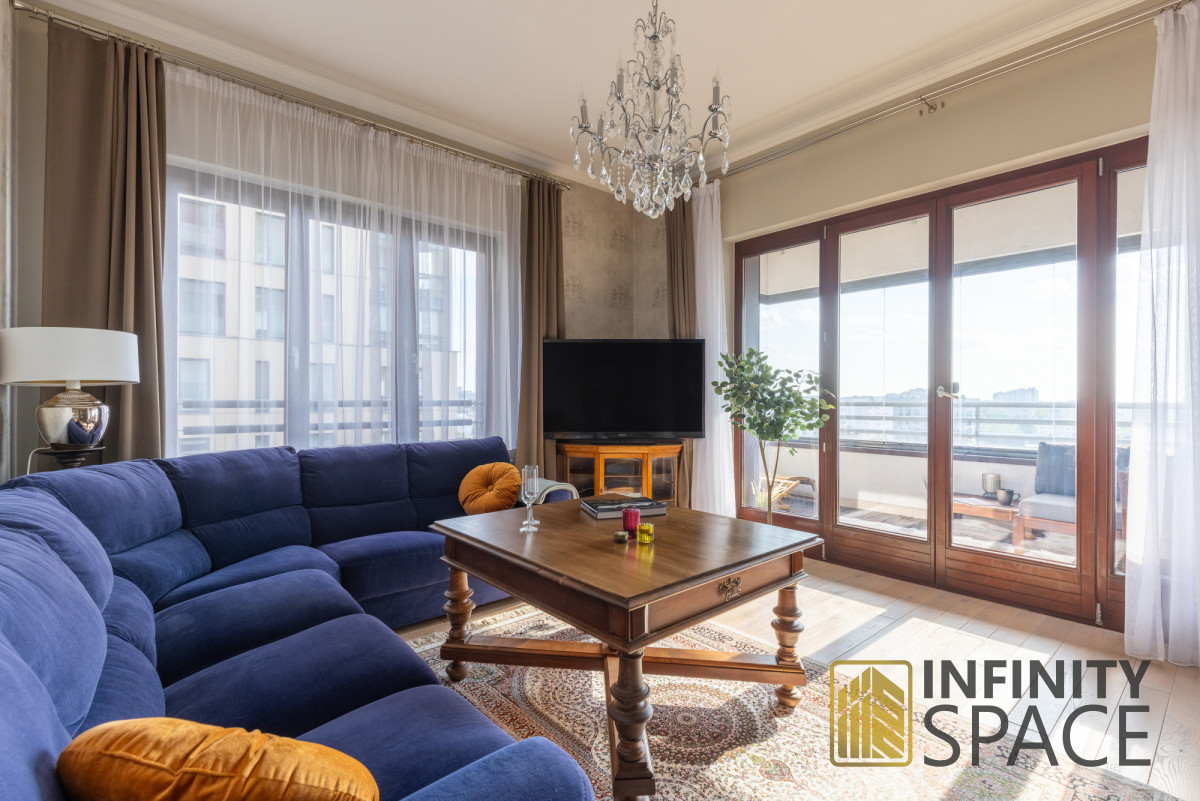 Wysokie wnętrza, ogromne okna i słoneczna ekspozycja południowo-zachodnia sprawiają, że mieszkanie jest pełne światła przez cały dzień. Panorama Warszawy rozciąga się tu jak na dłoni - to widok, który zachwyca o każdej porze. Cisza, spokój i luksus - w pełnym centrum miasta.
