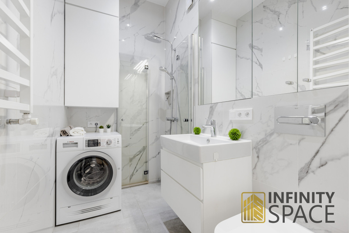 - łazienki z prysznicem i pralko-suszarką,