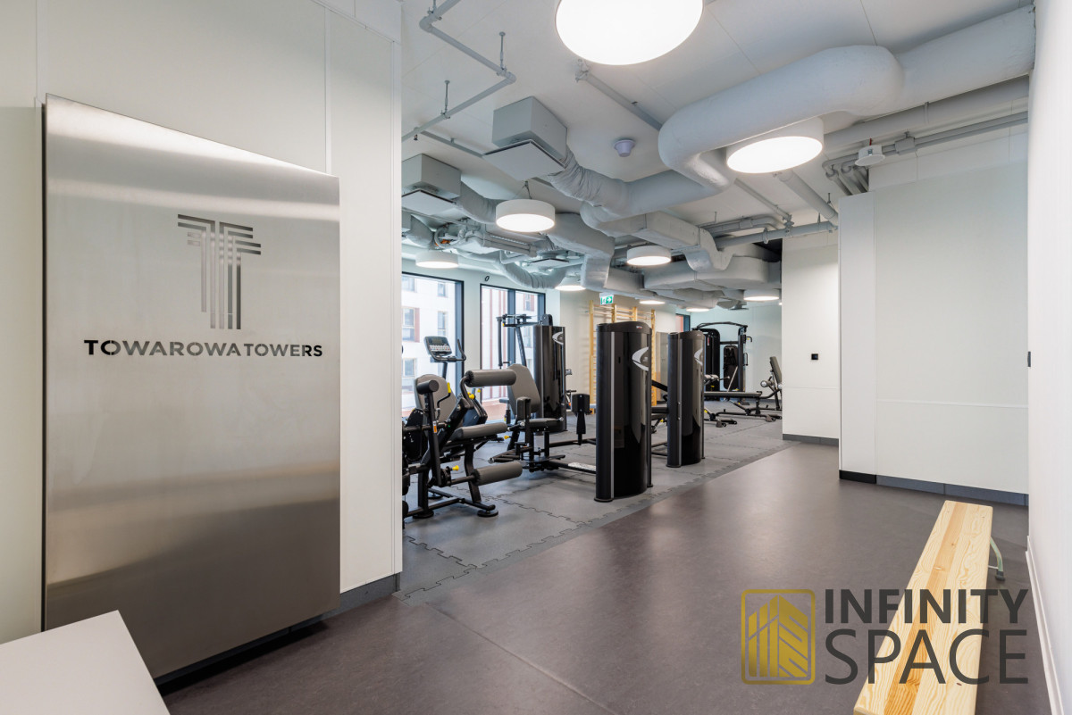 Towarowa Towers is an impressive, modern residential complex in the heart of Wola's business district, at Prosta Street 69C. It consists of two 29-story towers (105 meters high), offering 577 comfortable apartments. The development features minimalist architecture with colorful accents, a representative lobby, relaxation area, fitness club, terraces, and a green courtyard. Residents also have access to a reception and meeting spaces. Security is ensured by 24-hour security and CCTV.